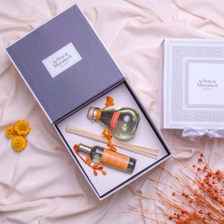 Parfumer la maison à la fleur d'oranger de Marrakech légèrement sucrée avec les tiges et le vase ou encore avec le vaporisateur à la même senteur.